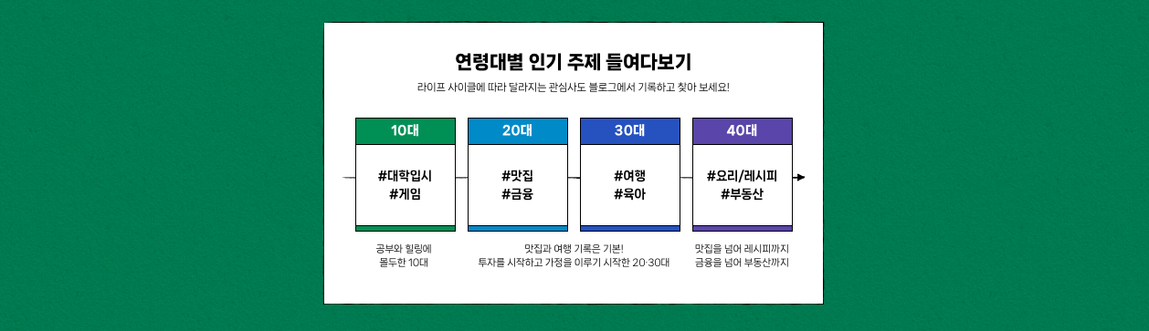 ๋ผ์ดํ ์ฌ์ดํด์ ๋ฐ๋ผ ๋ธ๋ก๊ทธ์์ ๊ธฐ๋กํ๊ณ ์ฐพ๋ ๊ด์ฌ์ฌ๋ ๋ค์ํ๊ฒ ๋ณํ์ค